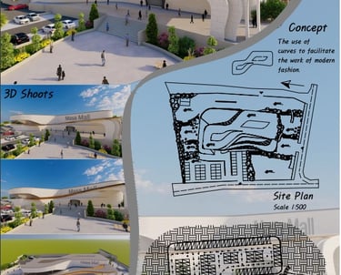 A selection of architectural drawings and 3D renders